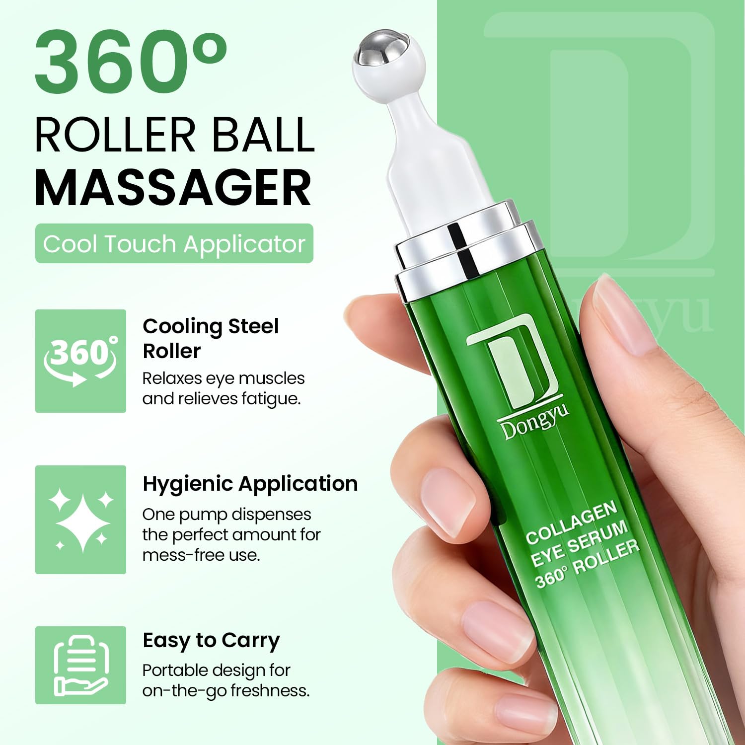 Deep Hydration: Experience 24-hour intense moisture with our lightweight formula that soothes irritation and revitalizes dry or hollow under-eyes. The 360° rollerball enhances absorption, delivering deep hydration while gently massaging to reduce puffiness and boost skin elasticity.